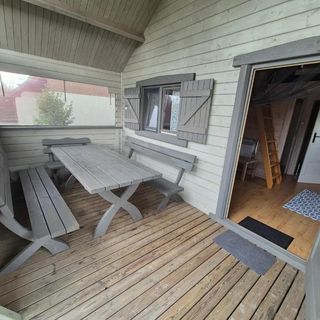 Każdy z domków posiada taras, TV oraz standardowe wyposażenie i umeblowanie.