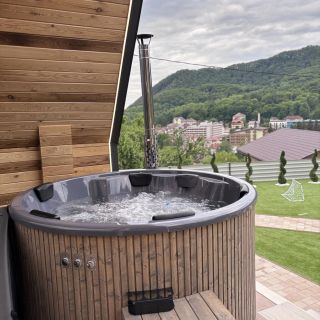 Na terenie obiektu przygotowano strefę relaksu z wanną z hydromasażem oraz tradycyjną kadzią kąpielową.
