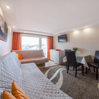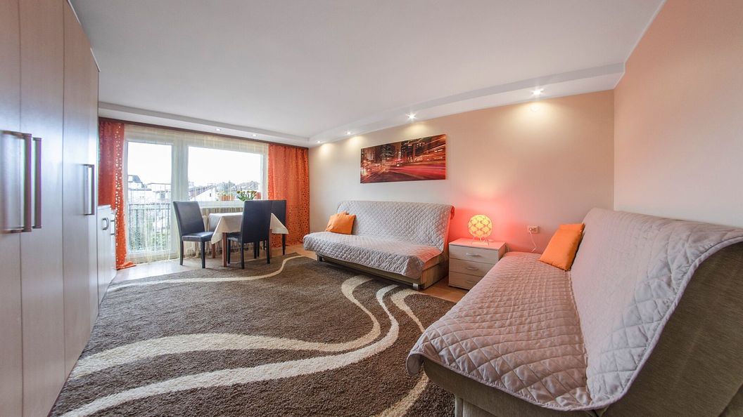 2 duże pokoje posiadają na wyposażeniu 2 kanapy 2 osobowe, tv lcd, lodówkę w pokoju