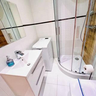 • Łazienka z kabiną prysznicową, pralką, suszarką do włosów i zestawem kosmetyków