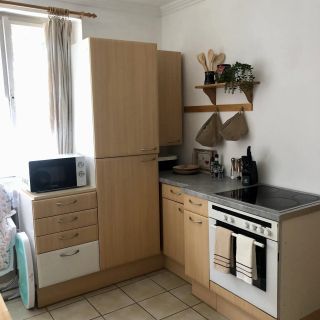 W apartamencie znajduje się kuchnia z płytą grzejną, lodówką, kuchenką mikrofalową i zmywarką. Dostępne są również niezbędne akcesoria kuchenne oraz czajnik elektryczny, co pozwala na samodzielne przygotowywanie posiłków.