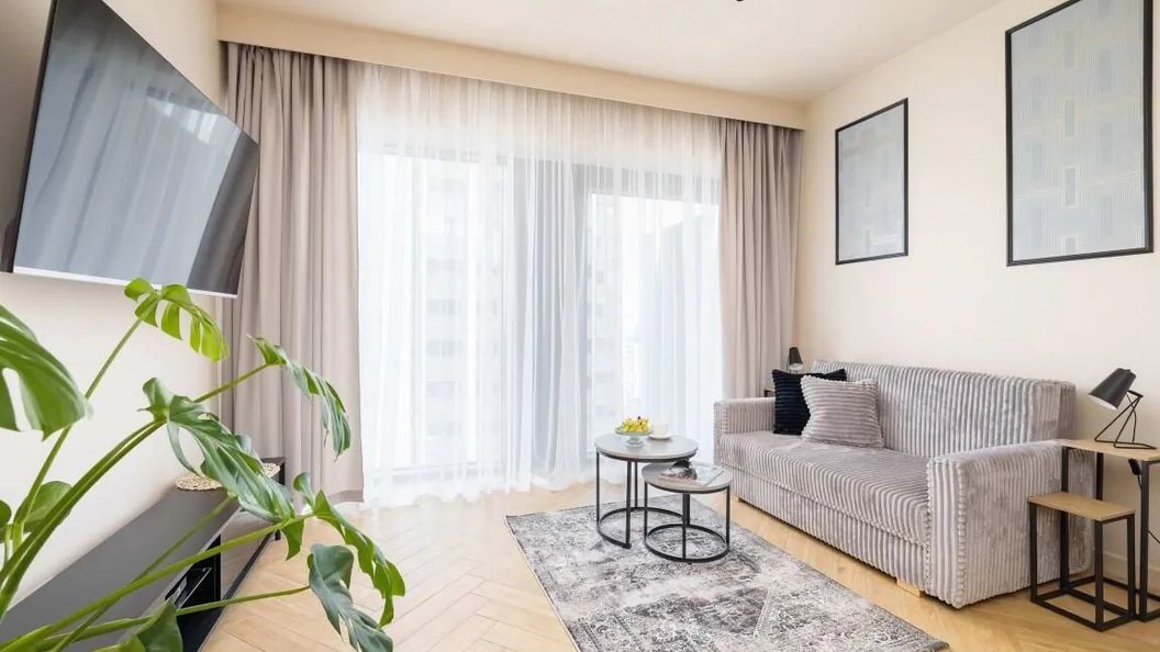 Klimatyzowane studio o powierzchni 27 m² może wygodnie ugościć 2 osoby - idealne rozwiązanie na wyjazd biznesowy, dla par lub rodziców z dzieckiem. Przestrzeń została zaprojektowana z myślą o funkcjonalności, maksymalnej wygodzie, oferując zarówno prywatność, jak i otwartą strefę wspólną. Po przekroczeniu progu, gości wita przedpokój z przestronną szafą i lustrem, przechodzi się przez aneks kuchenny, który prowadzi do części dziennej połączonej z jadalnią. Część wypoczynkowa oferuje wygodną, rozkładaną sofę, która zapewni komfortowe miejsce do spania dla dwóch osób, a także telewizor z dostępem do telewizji internetowej. Aneks kuchenny został zaprojektowany z myślą o pełnej swobodzie gotowania. Wyposażony jest w nowoczesną płytę indukcyjną, pojemną lodówkę z zamrażarką, czajnik elektryczny oraz frytkownicę na gorące powietrze. Dzięki tym udogodnieniom przygotowanie ulubionych, domowych dań będzie prawdziwą przyjemnością. Łazienka oferuje kabinę prysznicową, idealną do odświeżenia się po długim dniu oraz toaletę. Do dyspozycji gości jest również pralka, co jest szczególnie cenne podczas dłuższych pobytów. Aby ułatwić rozpoczęcie pobytu, zapewniono bezpłatny zestaw kosmetyków, ręczniki i pościel. Wnętrze jest przestronne i funkcjonalnie zaprojektowane, wychodząc naprzeciw wszelkim potrzebom gości. Przyjemna aranżacja zapewnia mieszkaniu spokojny klimat.