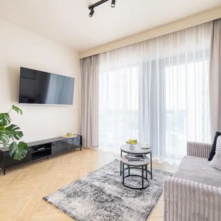 Apartament typu studio usytuowany w budynku, który jest częścią nowoczesnego kompleksu przy ulicy Zabrskiej w Katowicach. Obiekt ma do zaoferowania urokliwe patio na 3 piętrze, funkcjonalne strefy coworkingowe i sale konferencyjne. To wspaniałe miejsce zarówno na krótkie, jak i długie pobyty dla uczestników wyjazdów biznesowych, par, czy też rodziców z dzieckiem. Do dyspozycji zmotoryzowanych gości jest miejsce postojowe usytuowane w hali garażowej, a na parterze zlokalizowane są stojaki na rowery. Wystarczy około 10 minut pieszo, aby znaleźć się na miejskim rynku poprzecinanym torami tramwajowymi i otoczonym historycznymi oraz współczesnymi budynkami. Galeria Katowicka oddalona jest 650 m od obiektu, a do pobliskich sklepów spożywczych można dojść w 2-3 minuty, co zapewnia komfort codziennych zakupów. Miłośnicy zieleni mogą w niecały kwadrans dotrzeć pieszo do Parku Powstańców Śląskich. Międzynarodowe Centrum Kongresowe w Katowicach, Katowicka Strefa Kultury, a także Halę widowiskowo-sportowa "Spodek" w Katowicach, na której organizowane są liczne koncerty znajdują się nieco ponad 1 km od zakwaterowania. Miejsce jest świetnie skomunikowane z pozostałymi częściami miasta – najbliższe przystanki transportu publicznego są oddalone od nieruchomości jedynie o 5 minut pieszo. Dojazd samochodem na autostradę trwa 10 minut, a na międzynarodowe lotnisko mniej więcej 35 minut.