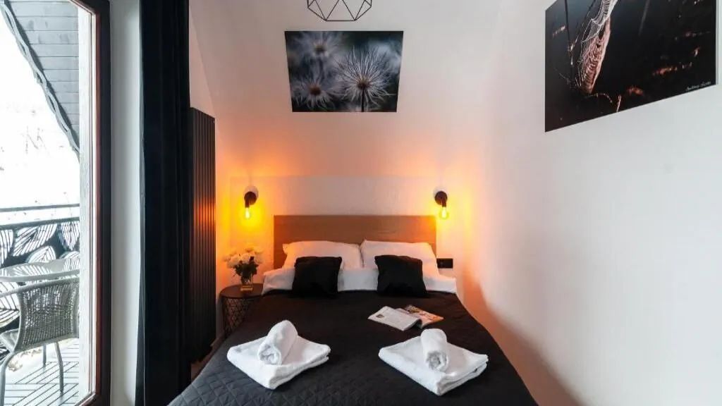 Do dyspozycji gości jest samodzielny apartament przeznaczony dla maksymalnie 4 osób. Składa się on z oddzielnej sypialni oraz salonu z telewizorem z płaskim ekranem. Integralną częścią jest również aneks kuchenny, wyposażony w lodówkę, zmywarkę i czajnik elektryczny. Apartament posiada także łazienkę z prysznicem oraz balkon, z którego można podziwiać okolicę.