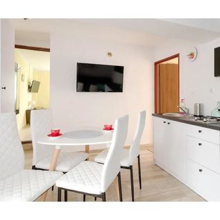Korzystaliśmy z apartamentu na dole (jak w domu ,wszytko było )trzy rodziny ,łącznie pięcioro dzieci ,wszystko w jak najlepszym porządku ,plac zabaw dla dzieci ,właścicielka nawet rozłożyła dzieciaką basen! Pani właścicielka bardzo miła ,nawet zajmowała się naszymi małymi dziewczynami ! Zdecydowanie polecamy i pozdrawiamy właścicicieli ,bardzo sypatyczni ludzie :)