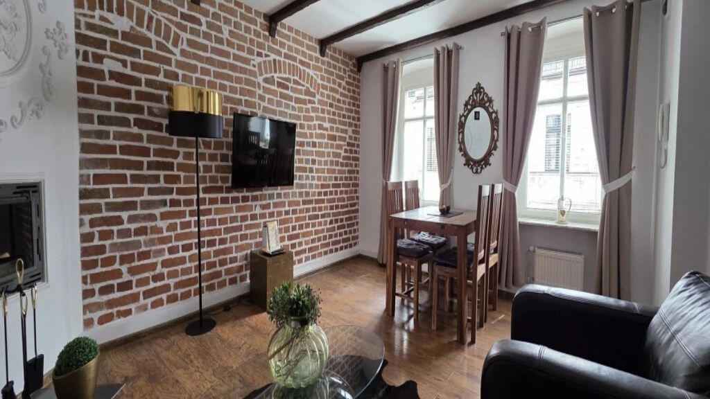Luksusowy apartament położony w samym sercu toruńskiej starówki, urządzony w eleganckim, nowoczesnym stylu z elementami glamour. Przestronny salon, przytulna sypialnia z hotelową pościelą oraz funkcjonalna kuchnia zapewniają wygodę zarówno na krótki, jak i dłuższy pobyt. To idealne miejsce dla osób ceniących estetykę, komfort i niepowtarzalny klimat historycznego centrum Torunia.