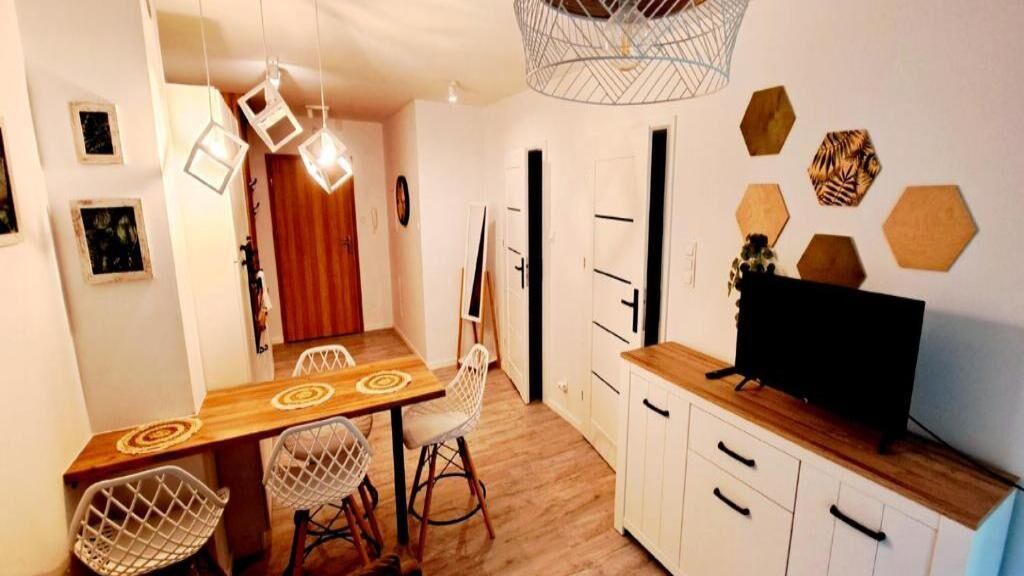 Apartamenty posiadają bezpłatne miejsce parkingowe , taras oraz wyposażony aneks kuchenny.