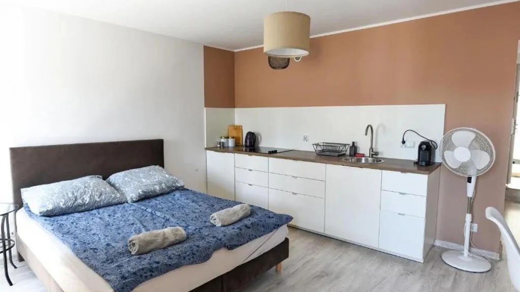 Ten klimatyczny apartament w zabytkowej kamienicy na toruńskiej starówce to idealna przystań na odpoczynek w centrum miasta. Jasne, przestronne wnętrza w stylu skandynawskim z drewnianymi akcentami i minimalistycznymi dekoracjami sprawią, że poczujesz się jak w domu. Wygodne łóżko, funkcjonalny aneks kuchenny i przestrzeń do relaksu to tylko niektóre z zalet tego miejsca. Lokalizacja w samym sercu starówki pozwala na pełne doświadczenie uroku Torunia, zaledwie krok od najpiękniejszych zabytków.