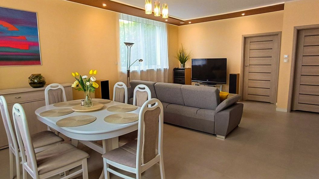 Planujesz rodzinne wakacje? W przestronnym wnętrzu z w pełni wyposażoną kuchnią poczujesz się jak w domu. Nasz ogród z zadaszoną strefą wypoczynku i grillem to idealne miejsce na wspólne posiłki i zabawy.