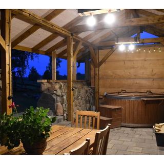 Na miejscu, za dodatkową opłatą, można skorzystać z sauny oraz balii ogrodowej, co stanowi doskonałe uzupełnienie relaksu po dniu pełnym wrażeń.