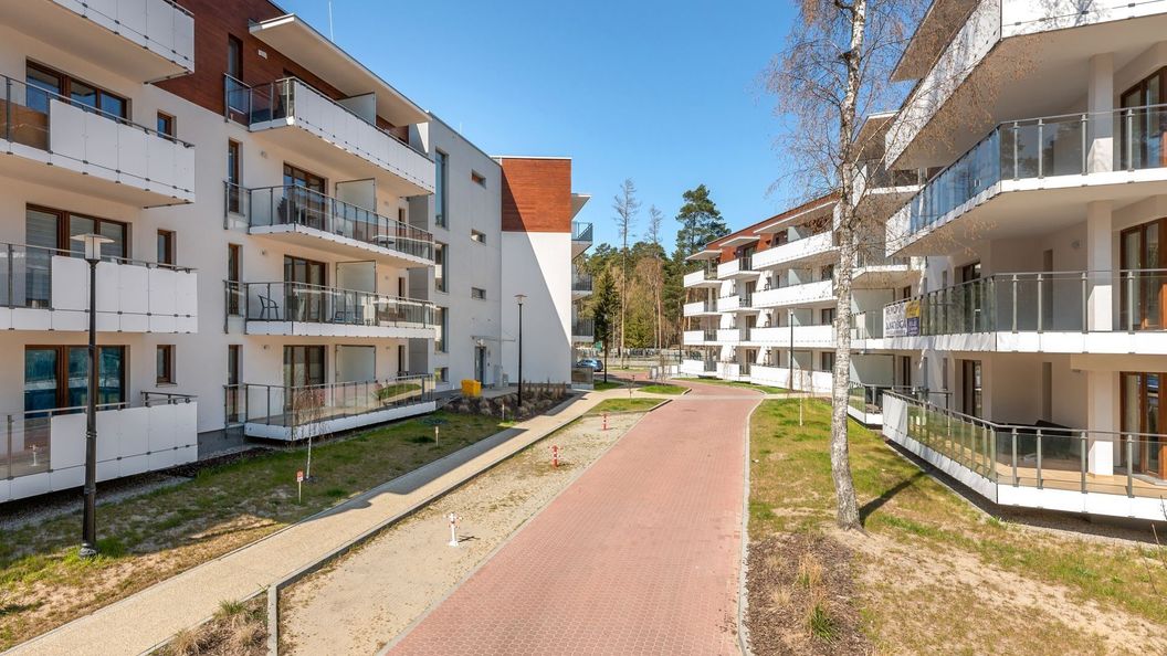Apartament składa się z przestronnego salonu z aneksem kuchennym oraz wyjściem na balkon, z którego roztacza się piękny widok na las – idealne miejsce na poranną kawę lub wieczorny relaks.