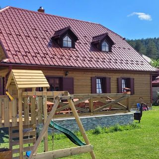 Chata Alžbetka oferuje całoroczne zakwaterowanie dla 10 osób. Na parterze drewnianego domu znajduje się duża przestrzeń z połączoną kuchnią, jadalnią i salonem. Kuchnia jest w pełni wyposażona w sprzęt niezbędny na dłuższe pobyty. Jadalnia połączona jest oknem francuskim z tarasem z miejscami do siedzenia, z którego roztacza się piękny widok na Liptowskie Kopy i dominujący w Tatrach Krywań. Salon oferuje komfortowe wieczory w przyjemnej atmosferze, którą dopełnia kominek, można oglądać programy na Smart TV lub grać w gry planszowe. Na parterze znajduje się również sypialnia dla dwóch osób oraz łazienka z prysznicem, umywalką i toaletą. W tylnej części łazienki znajduje się sauna na podczerwień. Na piętrze znajduje się kolejna sypialnia dla trzech osób oraz sypialnia dla pięciu osób z jedną dostawką (rozkładane łóżko z materacem), a także łazienka z prysznicem i toaletą. Dla najmłodszych przygotowaliśmy dwa łóżeczka turystyczne i kącik zabaw.
