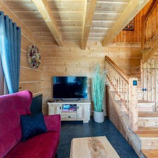 Domki - przestrzeń i wygoda Każdy z naszych dwóch domków oferuje: 3 przytulne pokoje dwuosobowe Dodatkową dostawkę – idealną dla dziecka lub dodatkowego gościa Maksymalna liczba gości: 7 osób w jednym domku To idealne rozwiązanie zarówno na romantyczny wypad we dwoje, jak i rodzinne wakacje czy wyjazd z paczką przyjaciół. Komfort jak w domu W domkach znajdziesz wszystko, co potrzebne do wygodnego pobytu: W pełni wyposażoną kuchnię (płyta, lodówka, naczynia, sztućce itp.) TV i Wi-Fi – dla relaksu i rozrywki Stylowe wnętrza w nowoczesnym stylu Ogrzewanie, ciepłą wodę i wygodne łóżka