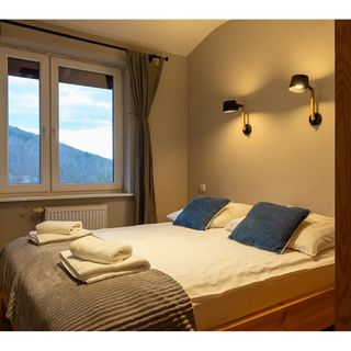 Apartament ten oferuje komfortowe miejsca noclegowe dla maksymalnie 6 osób. Na piętrze znajdują się dwie przytulne sypialnie – jedna z wygodnym łóżkiem małżeńskim (160 cm x 200 cm), druga z dwoma pojedynczymi łóżkami (90 cm x 200 cm). Dodatkowo na parterze w salonie mamy rozkładaną sofę, która zapewnia wygodny nocleg dla kolejnych 2 osób. Wszystkie łóżka wyposażone są w wysokiej jakości materace i pościel, gwarantujące doskonały wypoczynek po dniu pełnym górskich atrakcji.