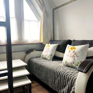 W apartamencie znajduje się dwuosobowa antresola do spania oraz dodatkowa rozkładana sofa, dzięki czemu może komfortowo pomieścić 2/3 osoby lub rodzinę z dziećmi.