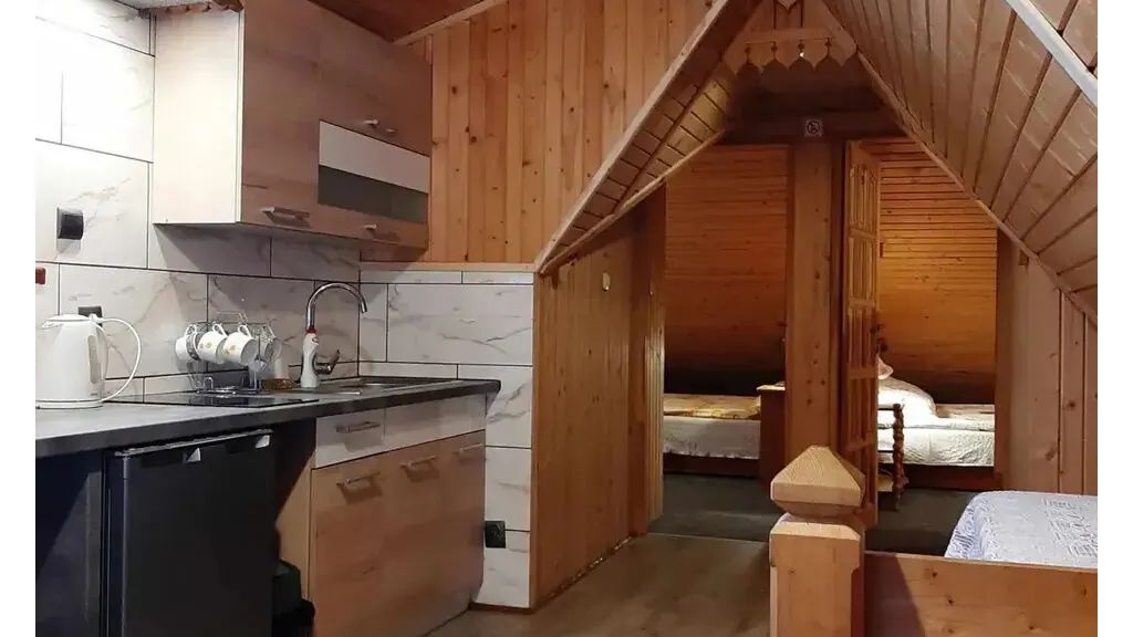 Oferujemy pokoje 2, 3, 4 i 5 osobowe z łazienkami i TV, dostęp do Internetu Wi- Fi. Do dyspozycji również sala kominkowa, dwa aneksy kuchenne na każdym piętrze, taras, taras widokowy, zewnętrzny grill oraz plac zabaw. Pokoje wykończone w drewnie.