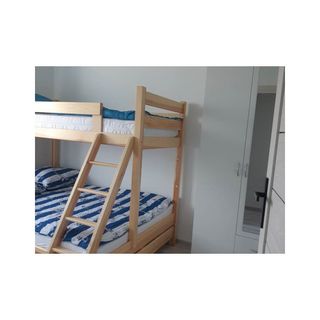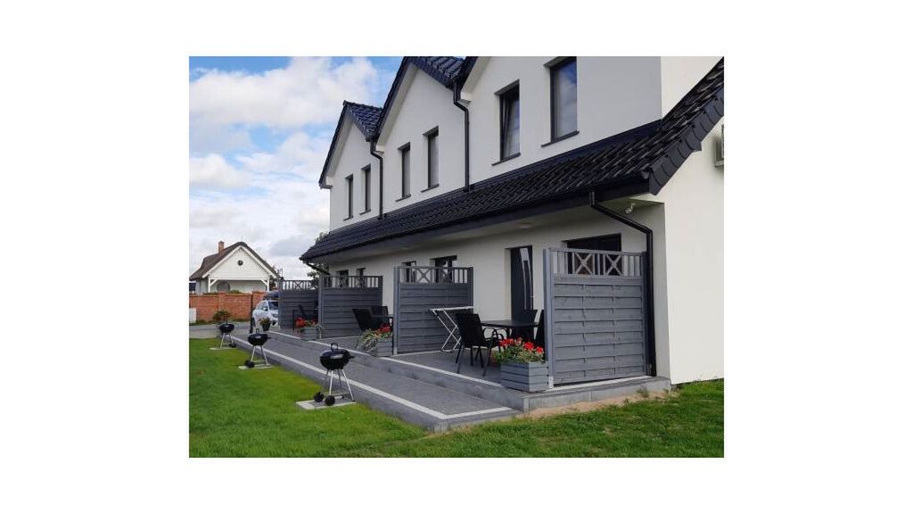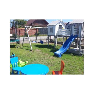Mamy do zaoferowania sześć piętrowych, komfortowo wyposażonych domków/apartamentów dla rodzin z dziećmi, które standardowo przeznaczone są dla 6 osób. Każdy domek składa się z salonu, oraz w pełni wyposażonego aneksu kuchennego i łazienki z prysznicem. Na górze znajdują się dwa pokoje. W jednym pokoju znajduje się łózko pojedyncze i podwójne, a w drugim łóżko piętrowe ( podwójne i pojedyncze). Istnieje możliwość zakwaterowania dodatkowych dwóch osób w salonie na sofie - koszt 50 zł/doba za osobę. Do dyspozycji gości przed każdy domkiem jest taras z wygodnymi meblami ogrodowymi oraz grillem. Do każdego domku właściciel przewidział dwa miejsca parkingowe znajdujące się przed posesją. Dla najmłodszych gości obiektu przygotowaliśmy plac zabaw.