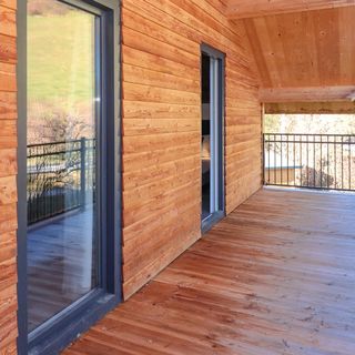 - Dom wykonany z drewna i cegły