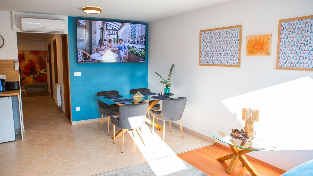 Niektóre pokoje w apartamencie posiadają balkon lub taras, gdzie możesz się cieszyć miłym wieczorem na świeżym powietrzu. Klimatyzacja działająca w każdym pokoju zapewni Ci przyjemny pobyt nawet podczas najgorętszych letnich dni. Bezprzewodowe połączenie z Internetem (WiFi) jest dostępne w apartamencie, pozwalając przenośnym urządzeniom i smartfonom na pozostanie online. Wszystkie pokoje są wyposażone w osobną toaletę i łazienkę.