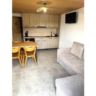 We wszystkich domkach znajduje się w pełni wyposażona kuchnia. Zawiera ona lodówkę, płytę grzejną oraz niezbędne akcesoria kuchenne, umożliwiając gościom samodzielne przygotowywanie posiłków.