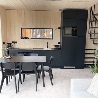 Wewnątrz domków znajduje się w pełni wyposażony aneks kuchenny, który obejmuje lodówkę, płytę grzejną, zmywarkę, kuchenkę mikrofalową, czajnik oraz komplet akcesoriów kuchennych. W części wypoczynkowej umieszczono telewizor z dostępem do usług streamingowych, a na wyposażeniu jest również suszarka do włosów, ręczniki i kosmetyki. Na deszczowe dni przygotowano gogle wirtualnej rzeczywistości.