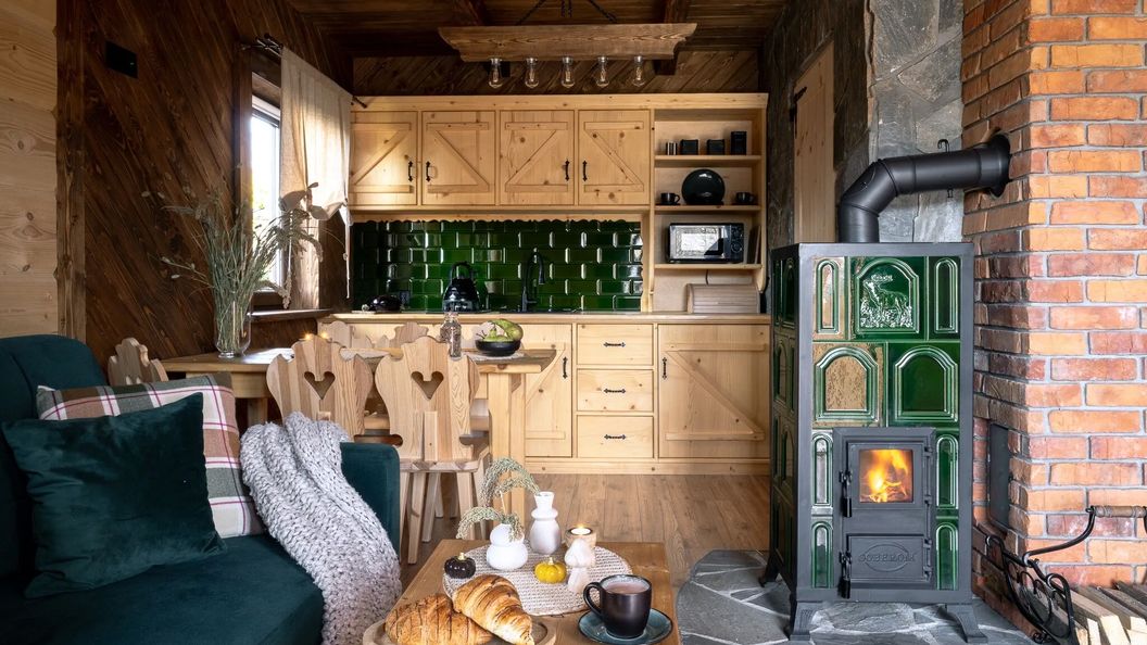 Domek posiada w pełni wyposażoną kuchnię, która umożliwia samodzielne przygotowywanie posiłków. Znajdują się w niej lodówka, kuchenka mikrofalowa, płyta grzejna, a także czajnik elektryczny i niezbędne akcesoria kuchenne.