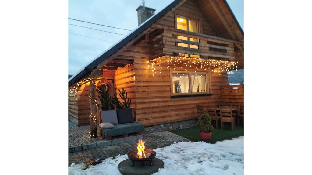 W domku znajduje się kominek, który w chłodniejsze dni tworzy wyjątkową atmosferę.