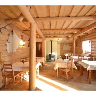 Wewnątrz chaty znajduje się przytulna sala z kominkiem i telewizorem oraz w pełni wyposażony, ogólnodostępny aneks kuchenny. Umożliwia on samodzielne przygotowywanie posiłków dzięki takim udogodnieniom jak pięciopalnikowa kuchnia gazowa z piekarnikiem, zmywarka, kuchenka mikrofalowa, dwie lodówki oraz komplet garnków, naczyń i sztućców.