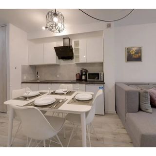 W apartamencie na Gości czekać będą świeże pościele, ręczniki, 2 rolki papieru toaletowego, mydło do rąk, kostki do zmywarki, płyn do mycia naczyń, ręcznik kuchenny, gąbka i ściereczka do mycia naczyń, zapasowe worki na śmieci.