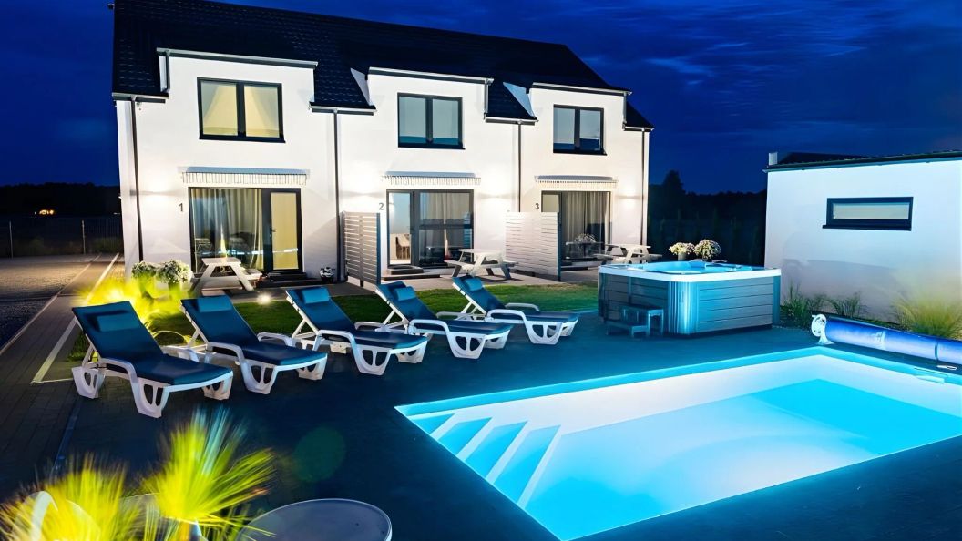 Do dyspozycji gości jest podgrzewany basen zewnętrzny z tarasem słonecznym i leżakami. Na terenie posesji przygotowano również plac zabaw z trampoliną dla dzieci oraz boisko do siatkówki. Wieczory można spędzać przy ogólnodostępnym grillu gazowym, a dla zmotoryzowanych gości dostępny jest bezpłatny, monitorowany parking.