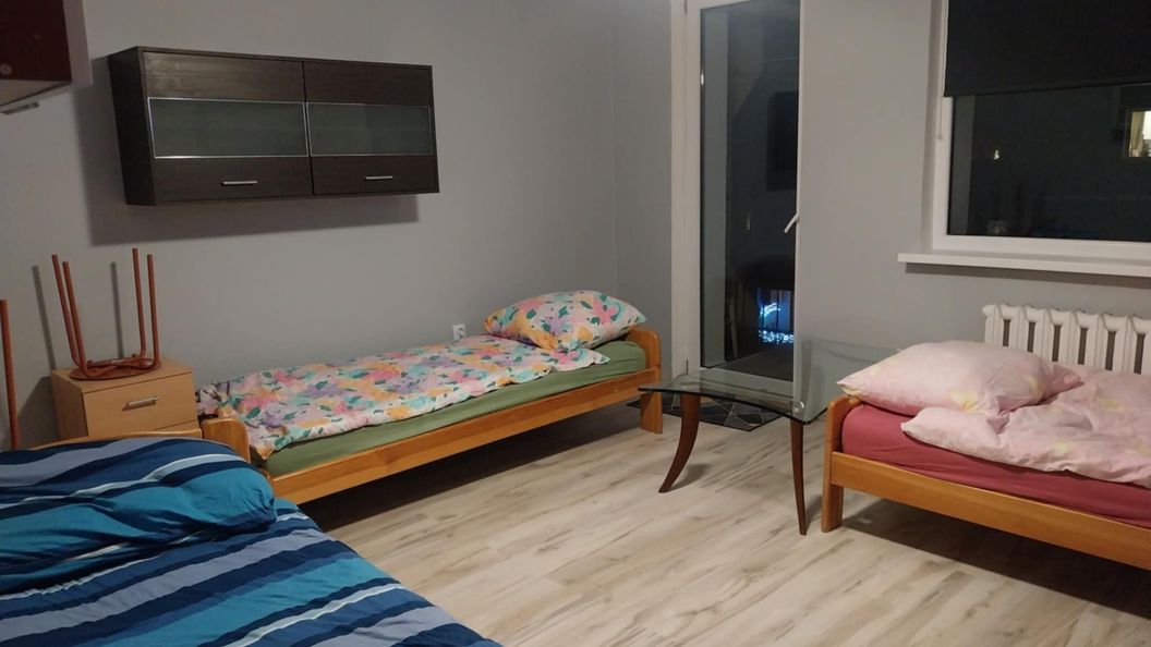 Do wynajęcia komfortowe, w pełni wyposażone mieszkanie z 7 miejscami noclegowymi, położone na spokojnym osiedlu Zacisze w Zielonej Górze. Układ: 3 pokoje (pokój 1: 3 miejsca, pokoje 2 i 3: po 2 miejsca), 2 oddzielne toalety, prysznic, balkon. Wyposażenie: łóżka i pościel, sofa, TV, szybki Internet, w pełni wyposażona kuchnia (kuchenka, lodówka, mikrofalówka, czajnik, naczynia), pralka, centralne ogrzewanie. Lokalizacja: spokojne osiedle