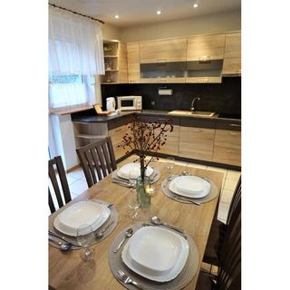 Dom o powierzchni 70 m .kwadratowych, przeznaczony maksymalnie dla 8 osób , zabezpieczony systemem alarmowym oraz monitoringiem kamer zewnętrznych .