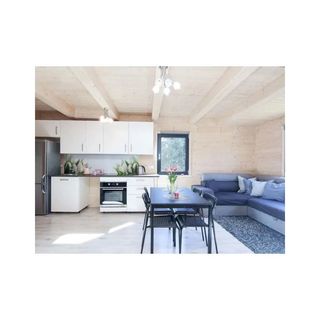 1. Dom o powierzchni ok. 90 m2, dla 10/11 osób: parter: składający się z kuchni otwartej na przestronny salon oraz sypialni małżeńskiej i łazienki (wc + prysznic).