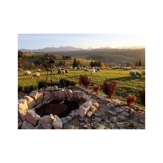 Sauna z panoramicznym oknem i widokiem na Giewont, Kasprowy, Czerwone Wierchy itd. , zbójnicki grill, plac do gry w boule-petanque, parking, WiFi, TV.