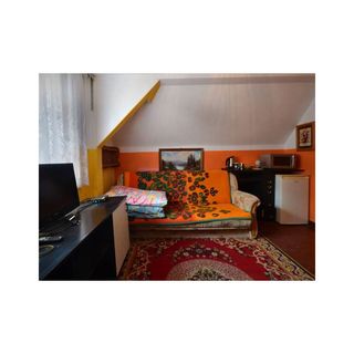 Wyposażenie pokoju trzyosobowego z łazienką: łóżko plus wersalka dwuosobowa, 2 kołdry, 3 poduszki, 2 koce, 2 komplety pościel, stolik, 2 krzesła lub 2 pufy, szafa, szafki nocne, lampka nocna, czajnik elektryczny, leżak, parawan, lusterko, telewizor z TV cyfrowa naziemną ,radio sieciowe z UKF, zegarek z budzikiem, podstawka do krojenia, 3 miski ze stali nierdzewnej, 3 szklanki, sztućce, kosz na śmieci.