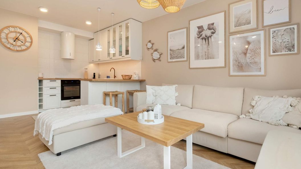 Ten elegancki i funkcjonalny apartament w Gdańsku o powierzchni 50 m2 został zaprojektowany z myślą o rodzicach podróżujących z dziećmi oraz osobach pracujących zdalnie, które pragną spędzić niezapomniane chwile. Lokal może komfortowo ugościć do czterech osób, oferując przestrzeń idealną do wspólnego relaksu. Jasna, przemyślana aranżacja wnętrz tworzy przytulną atmosferę.