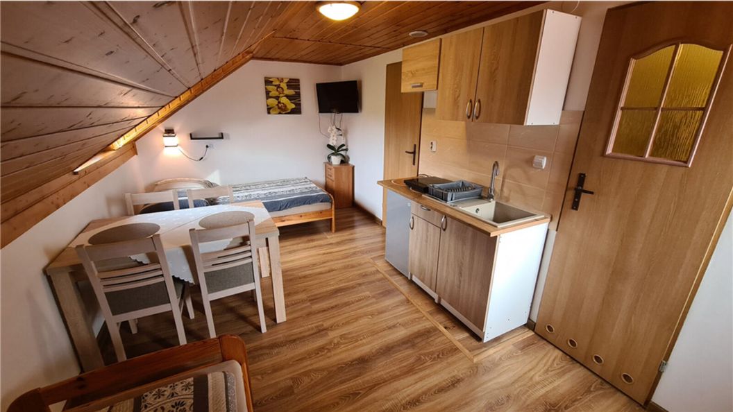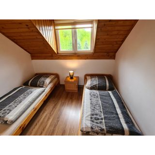 Oferujemy Państwu wynajem domków letniskowych dwupokojowych 4 – 5 osobowych w Polańczyku nad Soliną w Bieszczadach. W każdym domku znajduje się sypialnia z łożem małżeńskim, oraz pokój dzienny z dwoma łóżkami, TV, Internet bezprzewodowy, aneks kuchenny z pełnym wyposażeniem (lodówka, kuchenka, zlewozmywak, czajnik, naczynia) oraz łazienka z pełnym węzłem sanitarnym.
