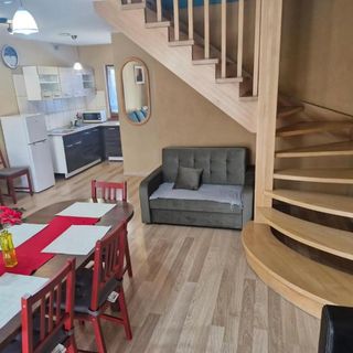 Każdy dom posiada osobne wejście z zewnątrz oraz wyjście na taras, z którego rozciąga się piękny widok na góry i całą okolicę. W apartamentach do dyspozycji Gości są: łazienka, łoże małżeńskie, aneks kuchenny, TV oraz Wi-Fi.