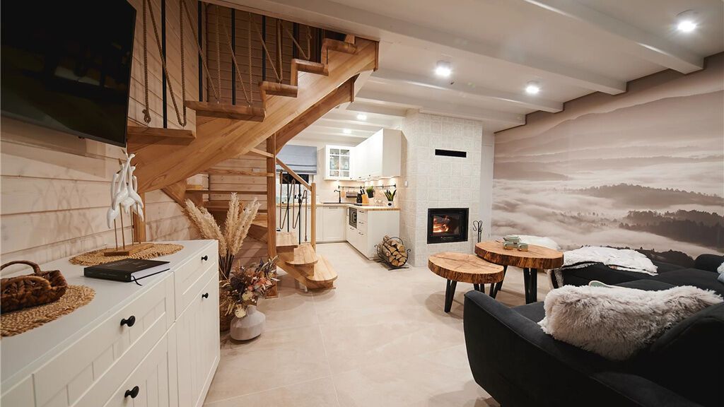 W salonie znajduje się klimatyczny kominek, opalany drewnem w sezonie grzewczym, który tworzy przytulny klimat zarówno na siarczysty mróz, jak i na chłodne, deszczowe wieczory. Po szaleństwie na stoku lub górskiej wędrówce z przyjemnością rozgrzejecie się Państwo przy trzaskającym ogniu.