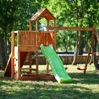 Do dyspozycji gości jest prywatny, ogrodzony teren z meblami ogrodowymi, idealny do wypoczynku na świeżym powietrzu. Na posesji przygotowano również miejsce do grillowania. Z myślą o najmłodszych gościach zaaranżowano plac zabaw z huśtawką i zewnętrzną zjeżdżalnią.