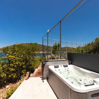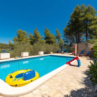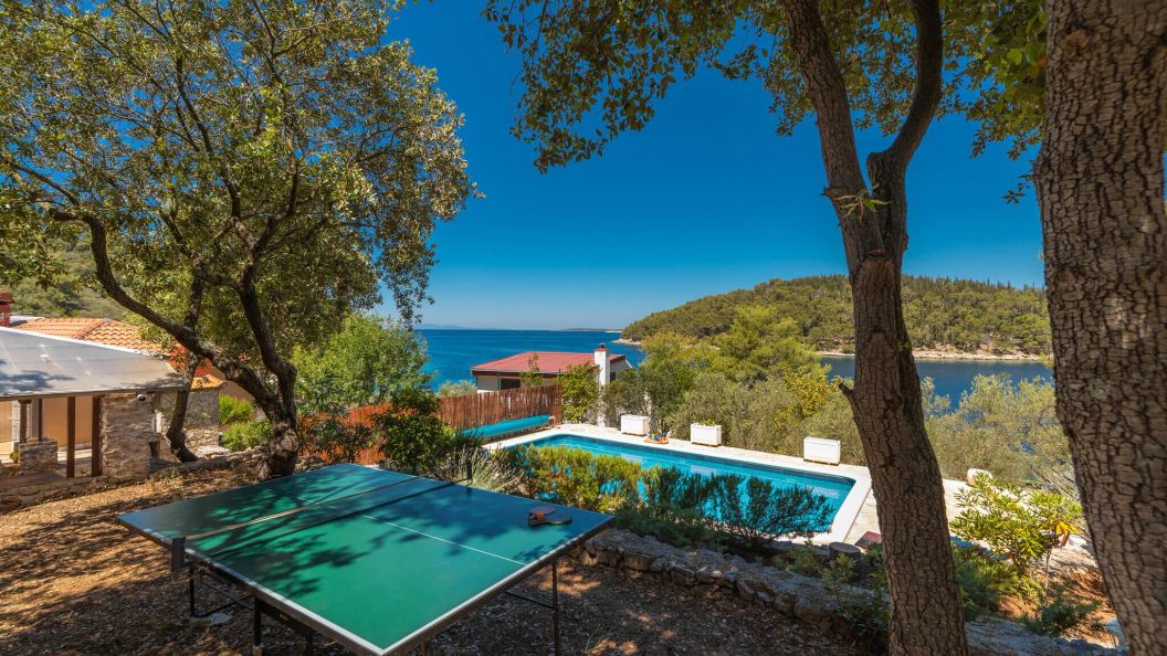 Kameralny dom letniskowy położony w Vela Luka na chorwackiej wyspie Korčula, w odległości mniejszej niż 50 metrów od kamienistej plaży.