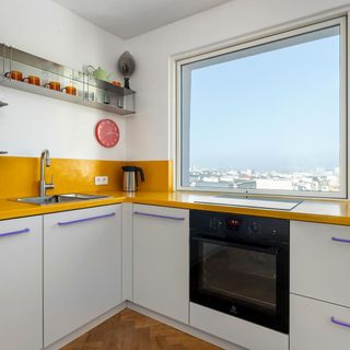 Przestronny, designerski apartament z balkonem został zaprojektowany z myślą o czterech osobach, idealny dla rodzin z dziećmi lub grup przyjaciół. Jasne wnętrze pełne koloru sprzyja relaksowi i wspólnemu spędzaniu czasu. W salonie znajduje się wygodne łóżko małżeńskie, a w sypialni łóżko piętrowe, co pozwala na swobodne dopasowanie przestrzeni do potrzeb gości. Nowoczesna kuchnia wyposażona jest w płytę indukcyjną, piekarnik, zmywarkę i ekspres przelewowy, dzięki czemu można przygotować ulubione posiłki w domowej atmosferze. W łazience znajduje się prysznic, pralka, suszarka elektryczna oraz suszarka do włosów. W apartamencie dostępny jest telewizor z funkcją Smart TV, szybkie Wi-Fi oraz system audio z możliwością połączenia urządzeń Apple przez AirPlay. Obiekt wyposażony został w czujniki dymu i czadu, co zapewnia pełne bezpieczeństwo pobytu. W budynku znajduje się winda, a z balkonu można podziwiać panoramę okolicy. Pobyt z pupilami jest możliwy za dodatkową opłatą.