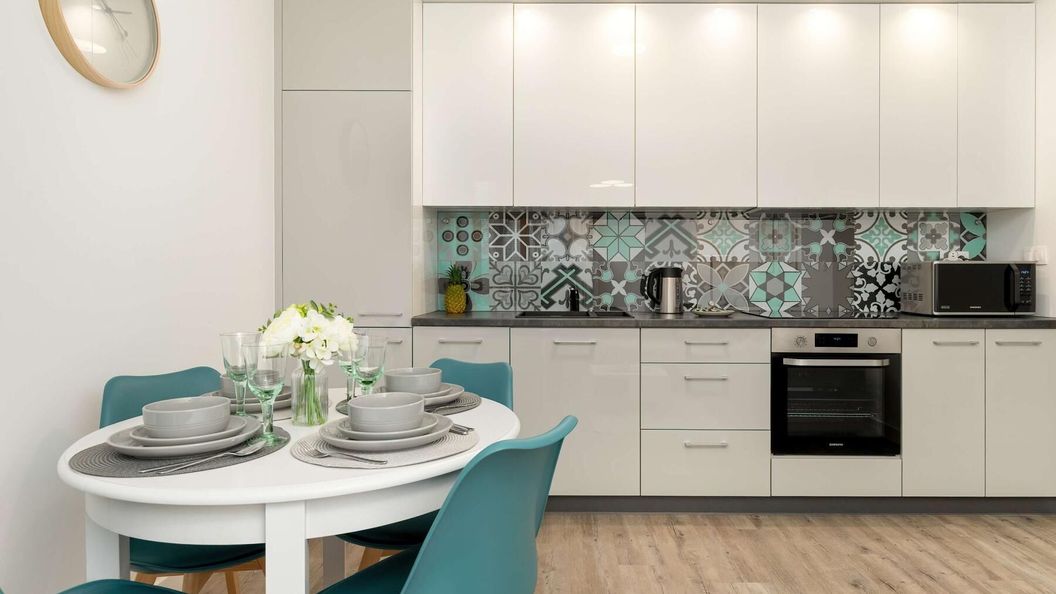 Płyta indukcyjna, piekarnik, zmywarka, lodówka, zamrażarka, kuchenka mikrofalowa, czajnik elektryczny, komplet naczyń i przyborów kuchennych, pochłaniacz pary