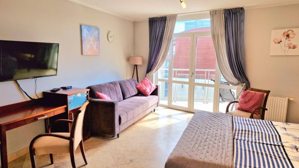 Apartament LaVerde to miejsce, gdzie marzenia o luksusie stają się rzeczywistością. Wyjątkowy Apartament gdzie design spotyka funkcjonalność, a elegancja miesza się z przytulnością. Nasz Apartament od razu otacza Was atmosferą elegancji i komfortu. Przestrzeń została urządzona z dbałością o najdrobniejsze detale, tworząc harmonię między stylem a wygodą. W Apartamencie panuje przytulna atmosfera, idealna do relaksu po intensywnym dniu nad morzem. Miękka kanapa, wygodne duże łóżko, stonowane kolory i subtelne dodatki sprawiają, że każdy moment spędzony tutaj staje się wyjątkowy.
