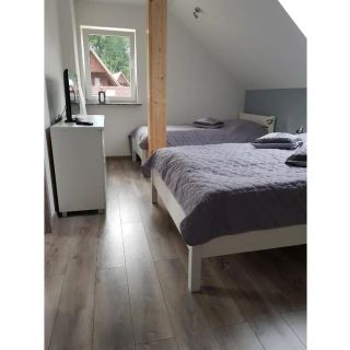 Oferta noclegowa obiektu obejmuje samodzielne, parterowe domki drewniane dla 5 osób oraz apartamenty przeznaczone dla 5 lub 7 gości. Część apartamentów składa się z dwóch oddzielnych pomieszczeń sypialnianych, co zapewnia komfortowy pobyt większym grupom lub rodzinom. Apartamenty zlokalizowane na parterze dysponują tarasami, natomiast te na poddaszu posiadają balkony. Wszystkie opcje zakwaterowania mają własną łazienkę z prysznicem.
