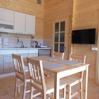 Każdy domek i apartament wyposażony jest w kuchnię lub aneks kuchenny z lodówką, płytą grzejną oraz podstawowymi akcesoriami kuchennymi. Do dyspozycji gości jest również telewizor z płaskim ekranem i czajnik elektryczny. Takie wyposażenie pozwala na samodzielne przygotowywanie posiłków i wygodną organizację pobytu.