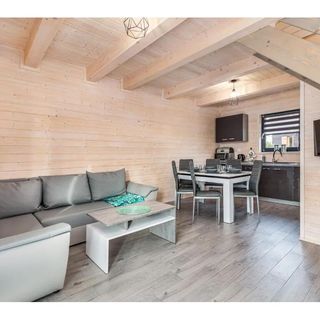 Każdy z domków, wybudowanych w 2021 roku, ma powierzchnię 54 m² i jest przeznaczony dla maksymalnie 6 osób. Na parterze znajduje się pokój dzienny z aneksem kuchennym oraz łazienka. Piętro zajmują dwie oddzielnie zamykane sypialnie, co zapewnia komfortowy wypoczynek. Do każdego domku przynależy także zadaszony taras oraz osobne wejście.