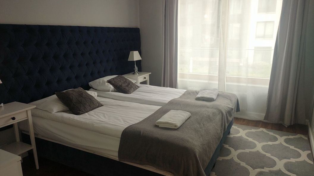 Przestronne i komfortowe mieszkanie o powierzchni 60 m², idealne dla rodzin, par i grup przyjaciół. Składa się z dwóch niezależnych sypialni z drzwiami, salonu z aneksem kuchennym, łazienki oraz oddzielnego WC, co zapewnia wygodę nawet przy dłuższym pobycie.