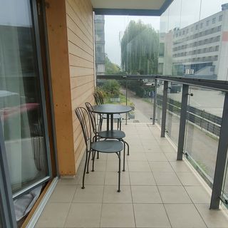 Lokal mieści się w nowoczesnym budynku i posiada duży balkon z fotelami i stolikiem kawowym – idealny na odpoczynek po dniu zwiedzania.