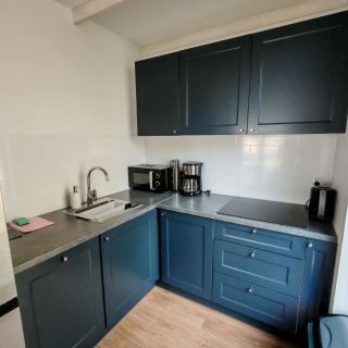 Do dyspozycji gości jest w pełni wyposażona kuchnia, która zawiera płytę grzejną, zmywarkę, kuchenkę mikrofalową oraz komplet naczyń i akcesoriów kuchennych.